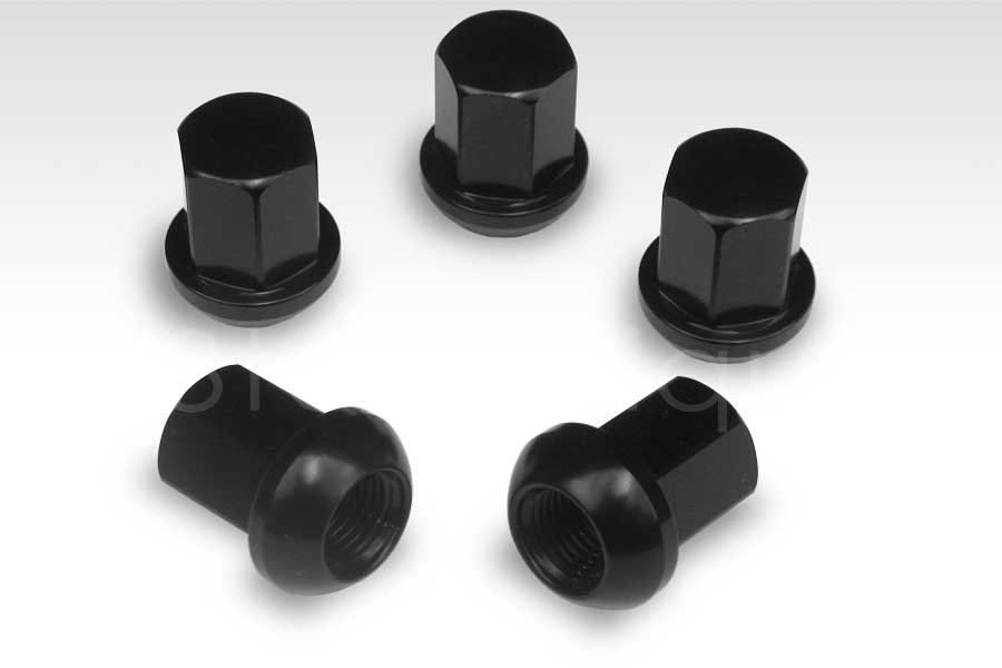 These closed end large ball seat Porsche style lug nuts are made from lightweight alloy and feature a black anodized finish. Though mainly used for alloy Porsche wheels, they can also be used on some alloy Mercedes wheels. Some Mercedes wheels require a small ball seat lug nut, so if you need help determining if these lugs are appropriate for your wheels, please contact us. Not for use with steel wheels.
