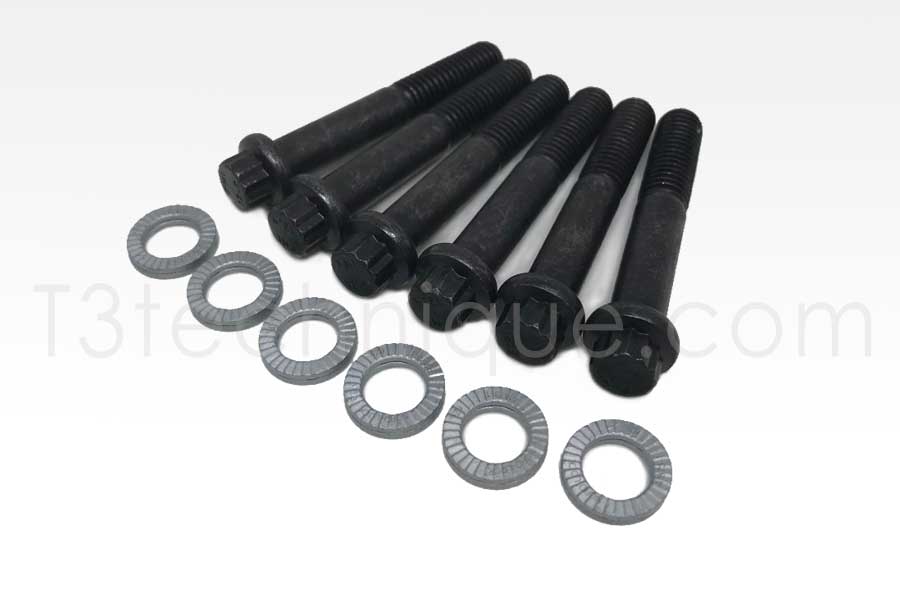 12pt CV bolts with Nordloc washers. Uses a 12 point 8mm socket for installation/removal which improves the grip the tool has on the bolt to help prevent stripping. Nordloc washers help prevent the bolt from loosening.