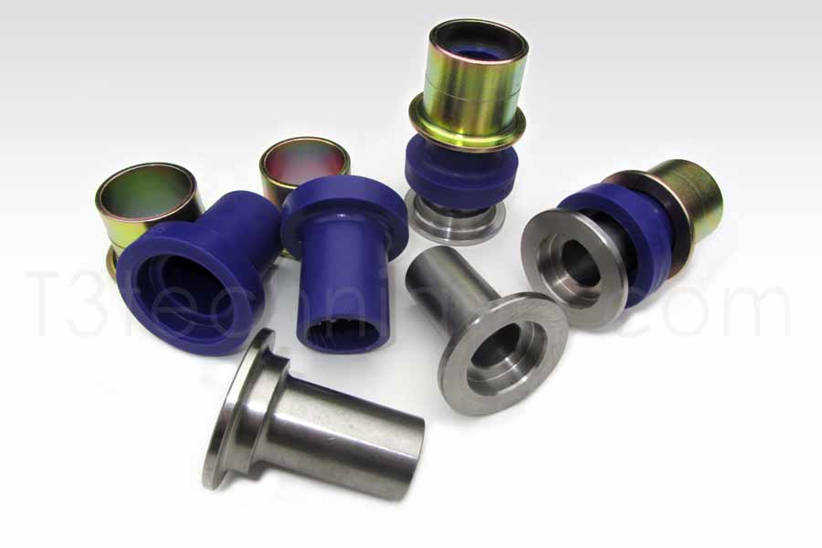 Powerflex Upper Control Arm Bushings feature stainless steel inner sleeves and cad plated steel outer sleeves for corrosion resistance and long life. It is our experience that the Powerflex Upper Control Arm Bushings actually provide a more comfortable ride quality than the stock upper control arm bushings. This is accomplished through a better system of vibration/noise isolation and use of materials. The result is that you really can experience a longer lasting product, better alignment control, better handling and a more comfortable ride all in one package. Suitable for 2wd or Syncro.