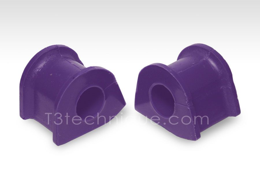 Powerflex Front Anti-Roll Bar to Chassis Bushings improve the efficiency of the front anti-roll bar (sway bar) by allowing the anti-roll bar to do its job controlling the roll of the body during cornering or in windy conditions. Stock rubber bushings are too compliant and much of the anti-roll bar's energy is absorbed into the soft rubber before having any affect on the handling of the vehicle.