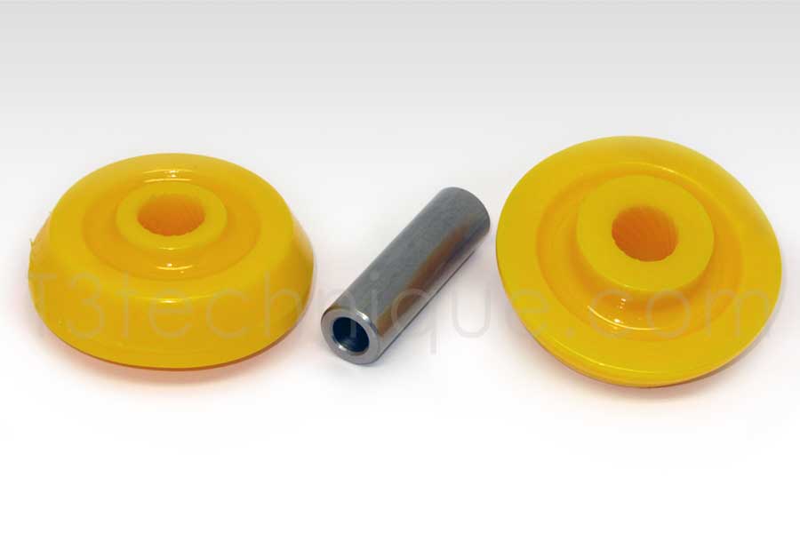 Over time, the original Syncro rubber differential/gearbox mounts compress which changes the relationship of the differential and/or gearbox to the chassis mount. This can lead to vibrations and noise. Replacing your old, worn out rubber mounts with Powerflex's urethane mounts will return your differential and/or your gearbox to its original location and will provide you with excellent component location properties along with great NVH (noise, harshness, vibration) isolation. The single-piece stainless inner sleeves are a bonus as well.